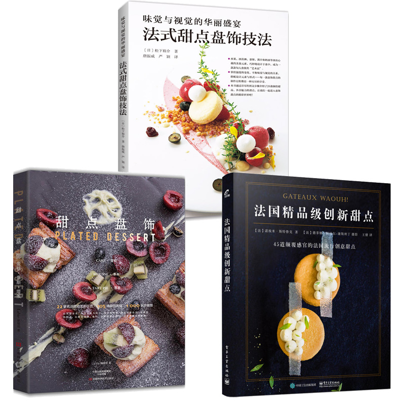 • 【全彩圖解3冊】甜點盤飾+法式甜點盤飾技法+法國精品級創新甜點 味覺與視覺的華麗盛宴 餐盤裝飾造型花樣款式設計大全 糕點創意 造型色彩搭配技法全圖解 NT$1780 詳情