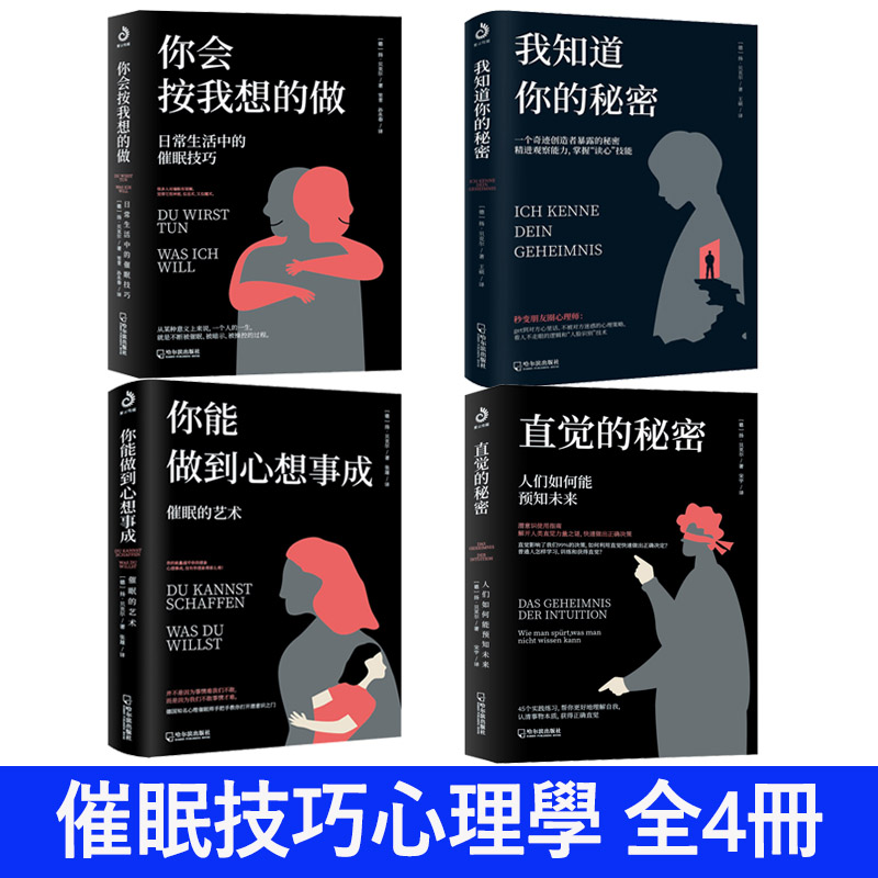 火爆全球的催眠心理學全4冊 你會按我想的做:日常生活中的催眠技巧 +我知道你的秘密+直覺的秘密:人們如何能預知未來 +你能做到心想事成:催眠的藝術