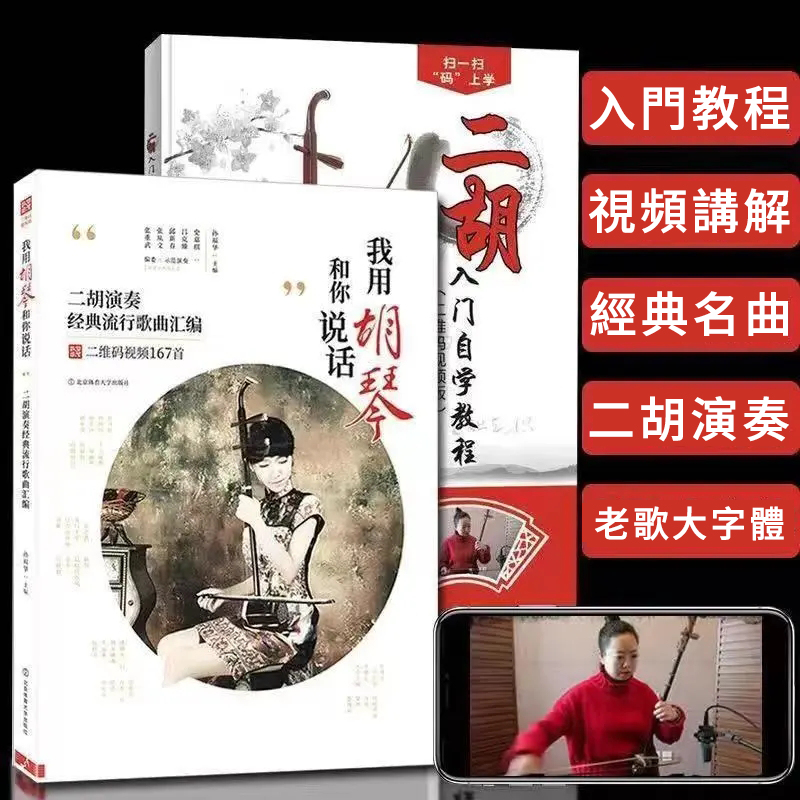 【附贈光盤DVD全套教程+掃碼看視頻】二胡演奏167首經典流行歌曲彙編——書中詳細標有指法,弓法,內外弦等 大字體,專為中老年人設計 高清視頻示範,一學就會!全台免運,貨到付款!