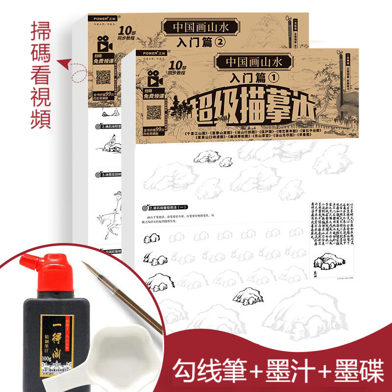 【贈視頻教程+國畫毛筆+一得閣香墨汁+墨碟】國畫8冊 山水 人物 花卉 禽鳥 梅兰竹菊 套裝淺印慢描,輕鬆掌握100種國畫技法,快速掌握經典筆法,技巧,控筆!
