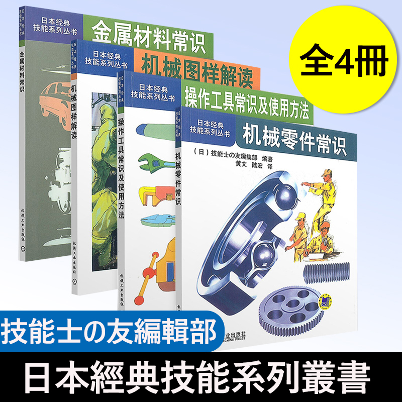 日本經典技能係列叢書4冊 機械零件常識+金屬材料常識+機械圖樣解讀+操作工具常識及使用方法
