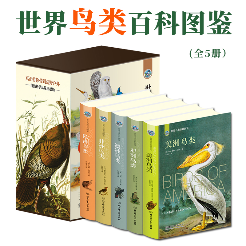 世界鳥類百科圖鑑(全5冊 全彩插圖 硬殼精裝 精美函套) 涵蓋世界五大洲鳥類,一套百科科普讀物,三大鳥類學家傳世著作