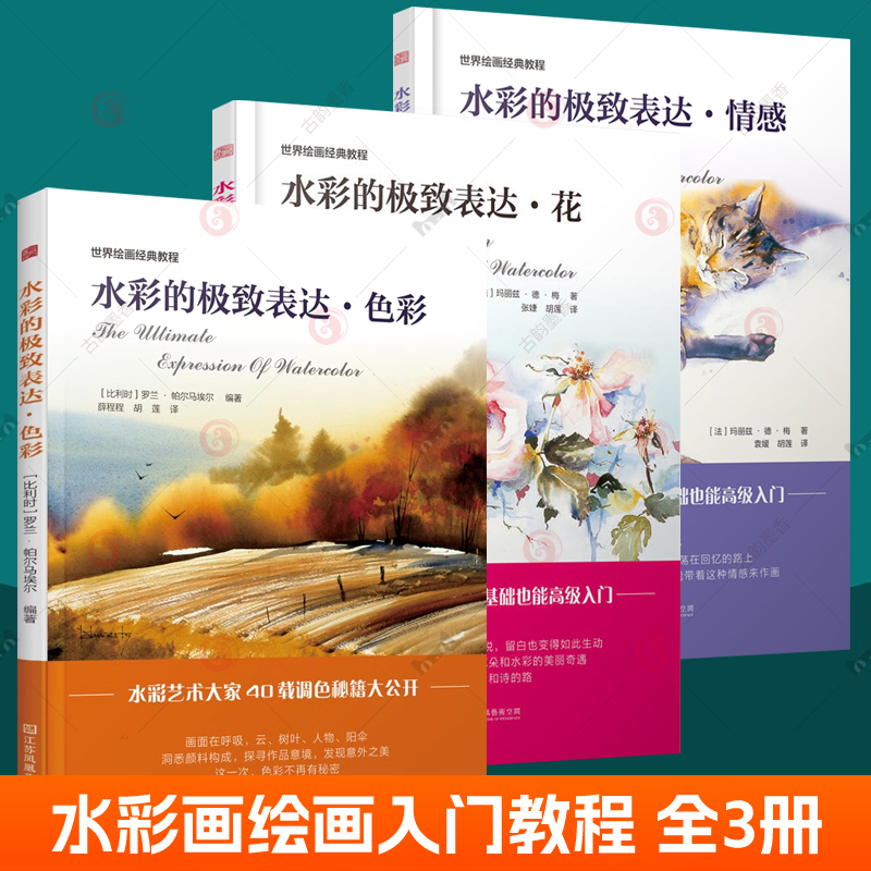 水彩的極致表達:色彩+花+情感(全3冊)水彩畫經典教學 水彩顏料調色原理技巧 水彩畫臨摹素材 水彩入門水彩畫書籍