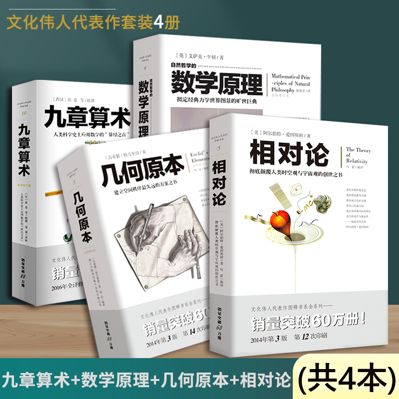 (套裝4冊)九章算術 +幾何原本+自然哲學的數學原理+相對論