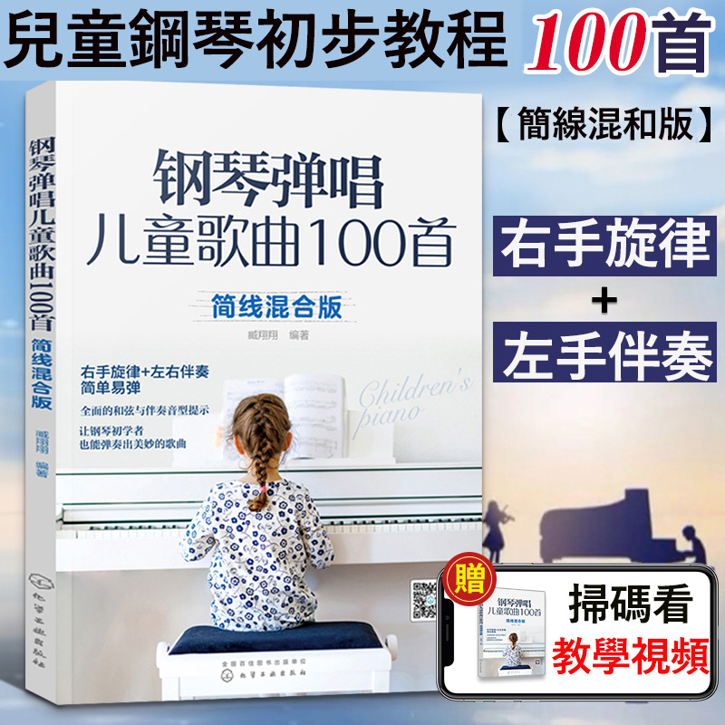 2022新版鋼琴零基礎入門 鋼琴彈唱兒童歌曲100首簡線混合版【贈視頻教程】,左右手指法全套教程, 內容簡單易學,雙手指法音頻簡譜,鋼琴/電子琴/手捲鋼琴也可以使用