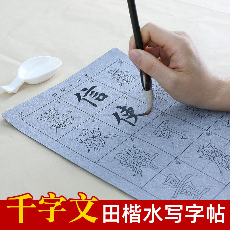 歐體田楷千字文毛筆字帖水寫布套裝84張 1000字 6厘米大字格(贈楷書專用毛筆+水碟)