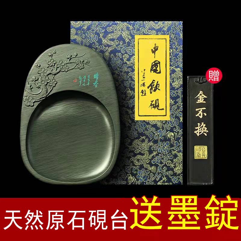 國家非遺暗香歙硯 8寸原石硯台(19.2*13.2*2.8cm) 老坑天然歙縣硯台 送金不換墨錠
