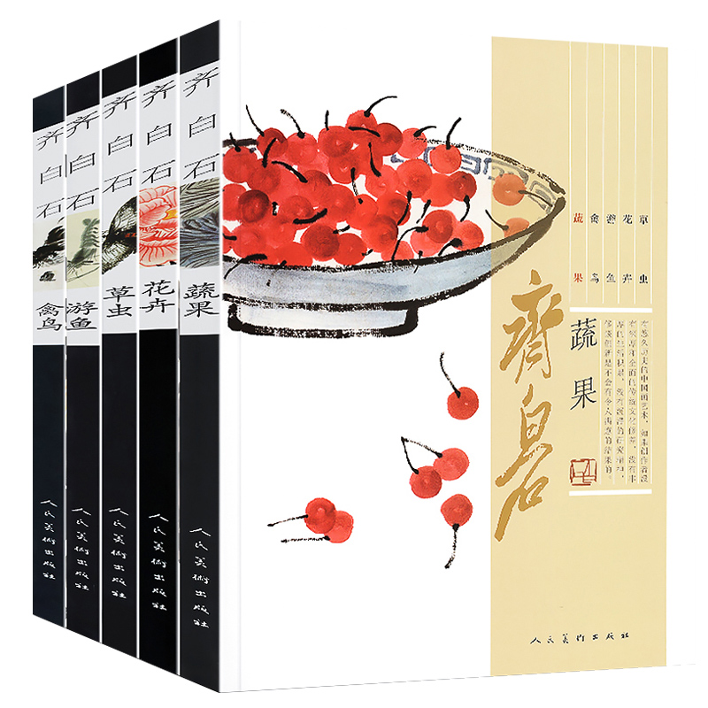 齊白石畫集5冊 游魚+蔬果+禽鳥+花卉+草蟲 國畫梅蘭菊竹牡丹荷鷹魚蝦蟹 國畫技法教程寫意水墨畫譜