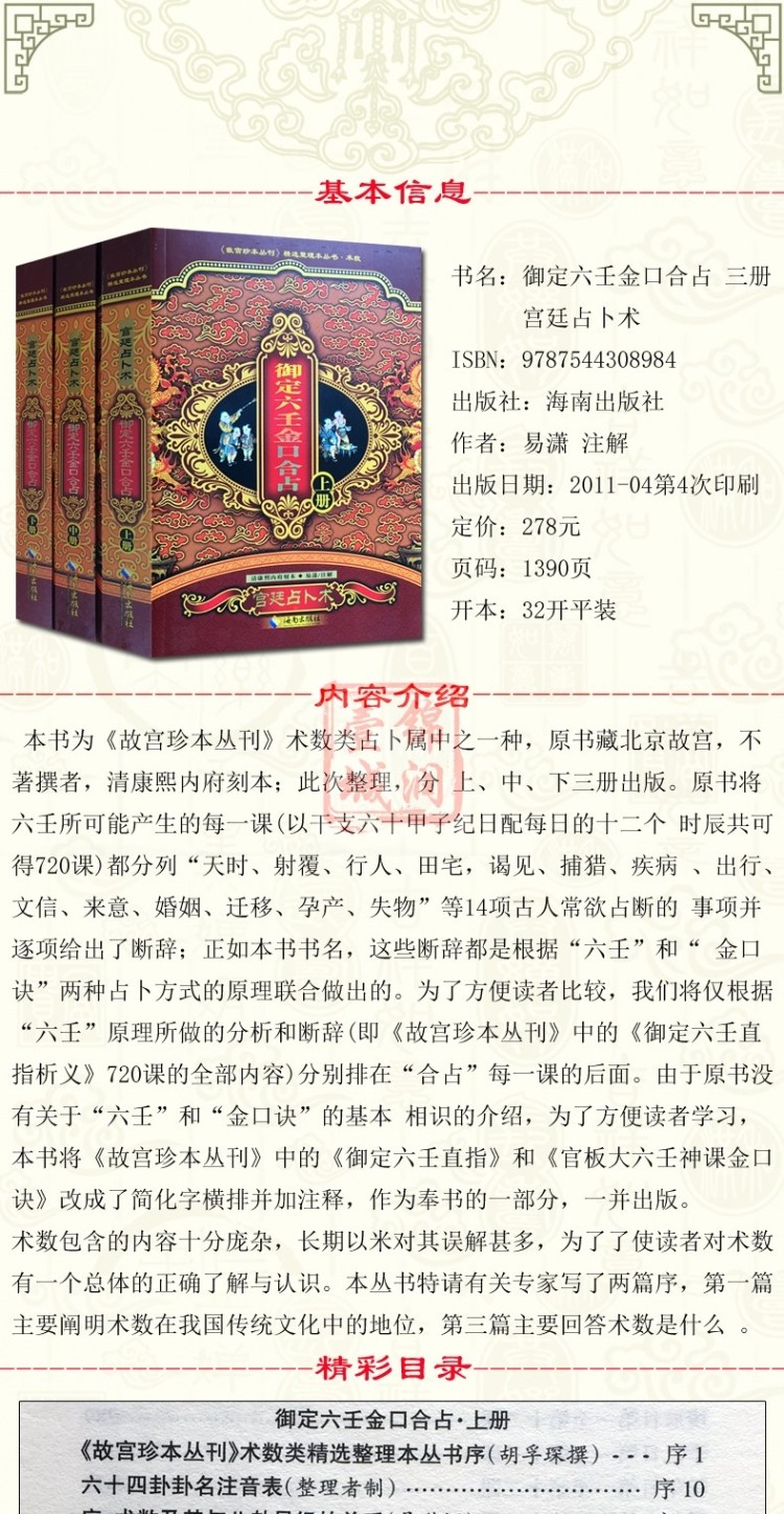 【故宮珍本叢刊】禦定六壬金口合佔 上中下3冊 原文+註解 清康熙內府刻本宮