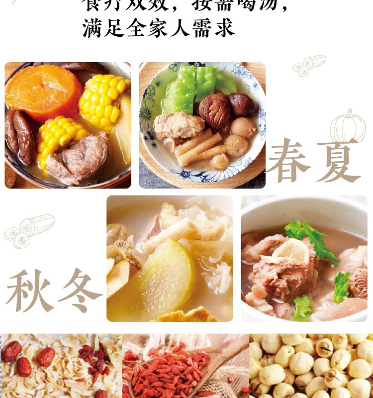(蓮子豬心湯、冬瓜蝦仁湯、鱔魚豬肝湯、木瓜黃豆豬蹄湯)