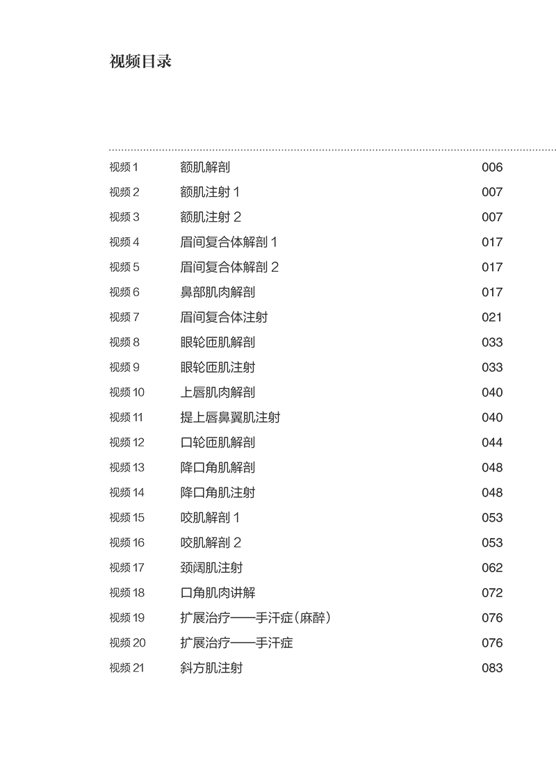 臨床上,肉毒素肌肉注射操作看似簡單,但治療後效果卻不盡相同,選擇精準的注射部位及適當的注射劑量對達到良好術後效果至關重要。本書從解剖著手,以屍體解剖圖片結合示意圖的形式,將面部注射技巧及要點一一敘述,由淺入深,將目前常見註射美容所涉及的解剖理論基礎以及注射具體操作方式相結合,並加以視頻輔助,從零開始,由理論到操作,"手把手"教會面部注射,是肉毒毒素注射的入門級圖書。希望能夠幫助讀者掌握規範的注射手法,且做到知其然知其所以然。
