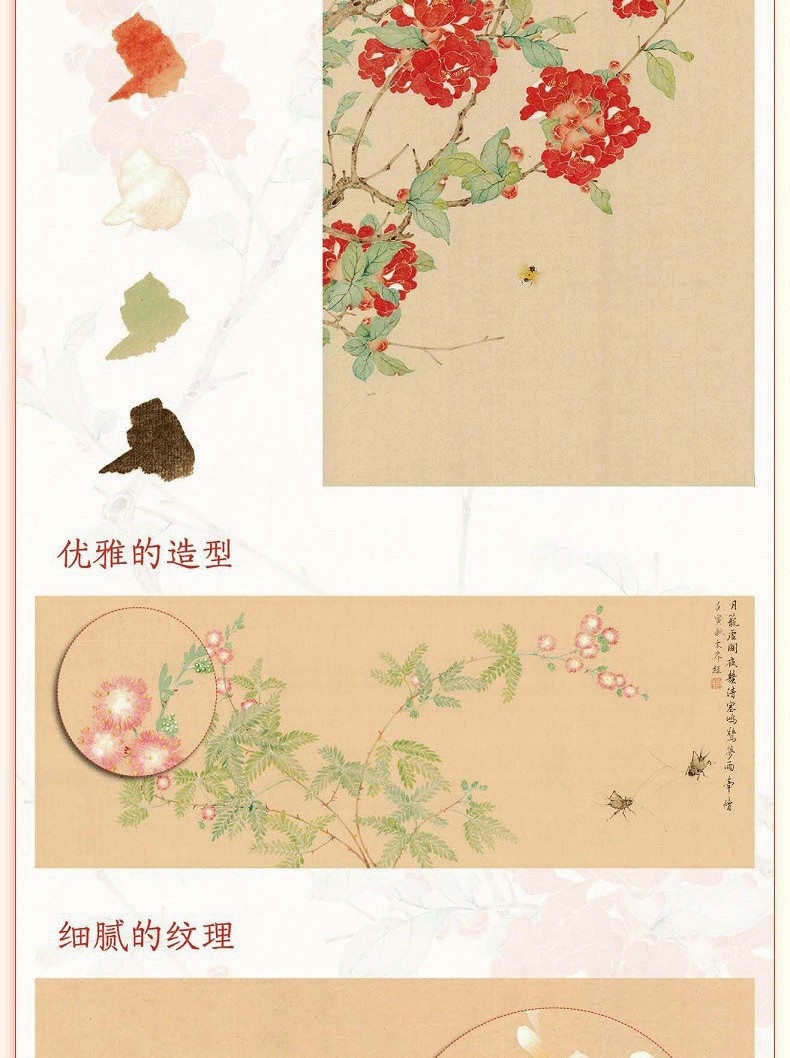 本書分為「含露團雪」「芳草萋萋」「情紅滿枝」「草粘飛蝶」4章。書中每個案例都涉及構圖、技法、用色、繪製過程等多個面向的內容,體現了對繪畫的思考與總結,帶領讀者感受到沒骨畫的筆墨神韻。