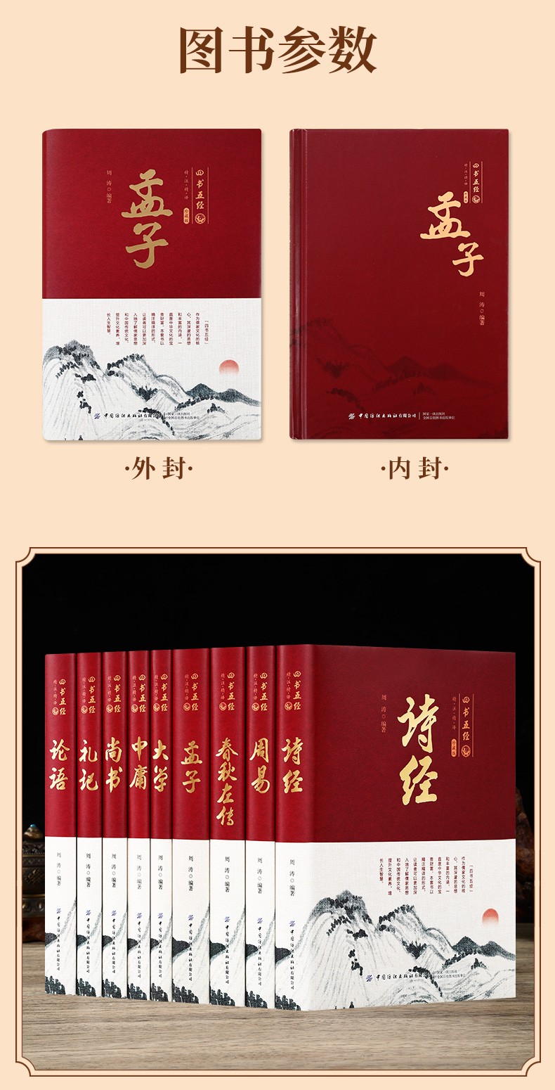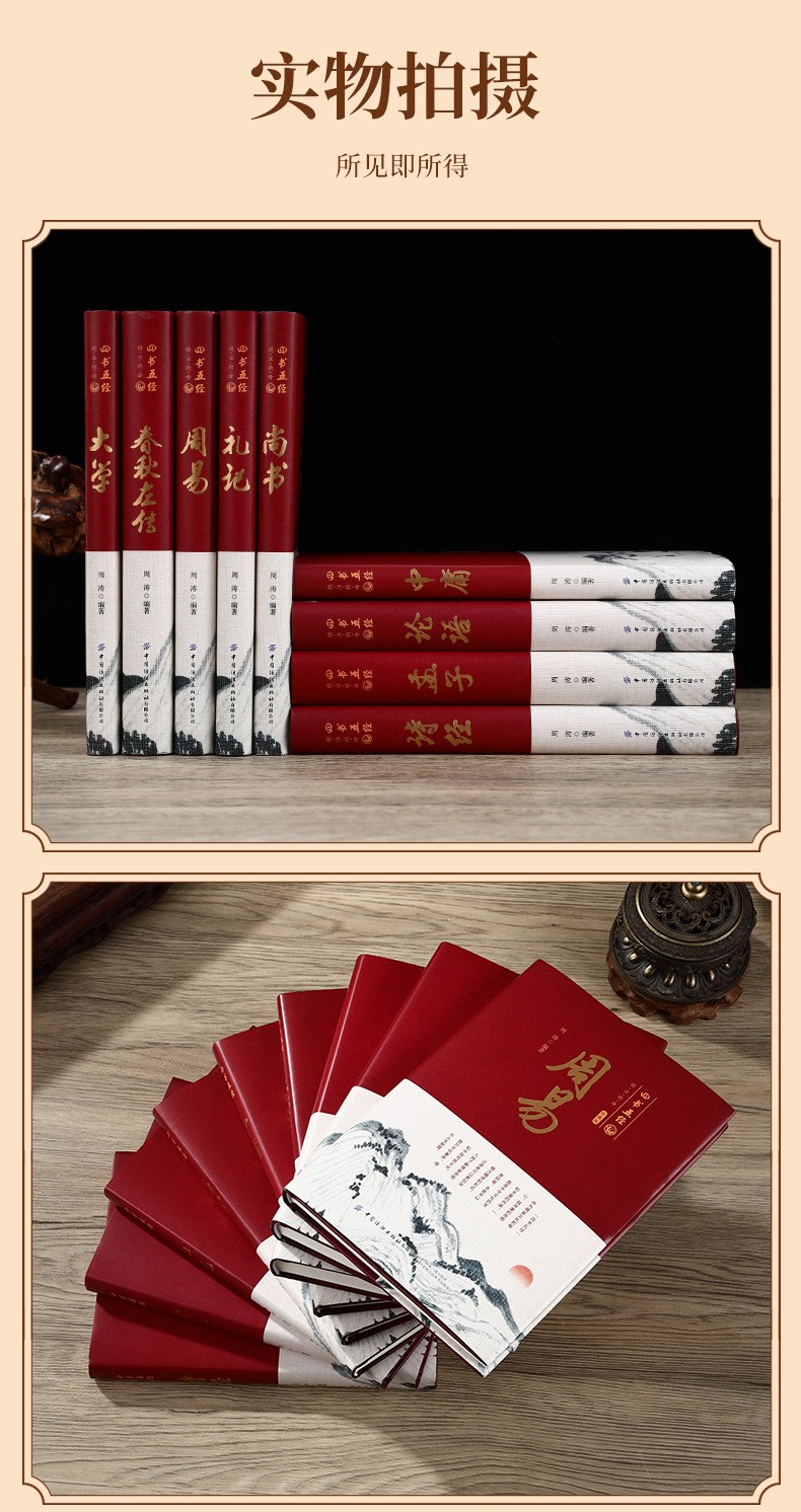 四書五經 刷邊版(全9冊) 詩經 周易 春秋左傳 孟子大學 中庸 尚書 禮記 論語 國學經典書籍