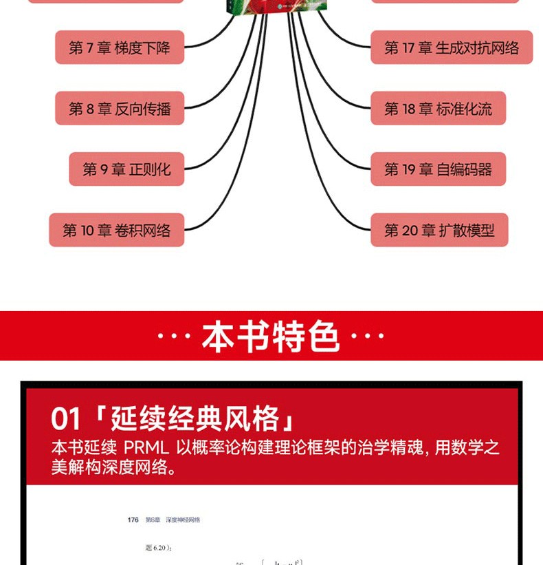 本書還對正則化、採樣、潛變量、生成對抗網絡、自編碼器、擴散模型等關鍵技術展開深入分析,闡釋其原理、算法流程及實際應用場景。對於機器學習領域的新手,本書是全面且系統的入門教材,可引領其踏入深度學習的知識殿堂;對於機器學習領域從業者,本書是深化專業知識、緊跟技術前沿的有力工具;對於相關專業學生,本書是學習深度學習課程、開展學術研究的優質參考資料。無論是理論學習、實踐應用還是學術研究,本書都是讀者在深度學習領域探索與前行的重要指引。