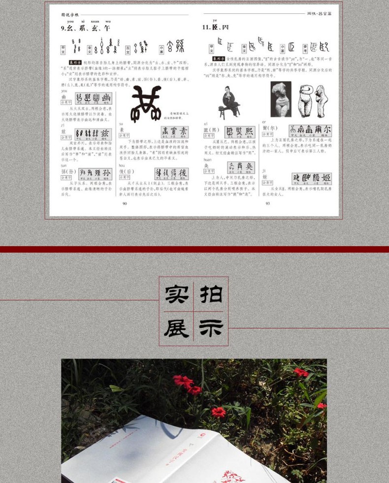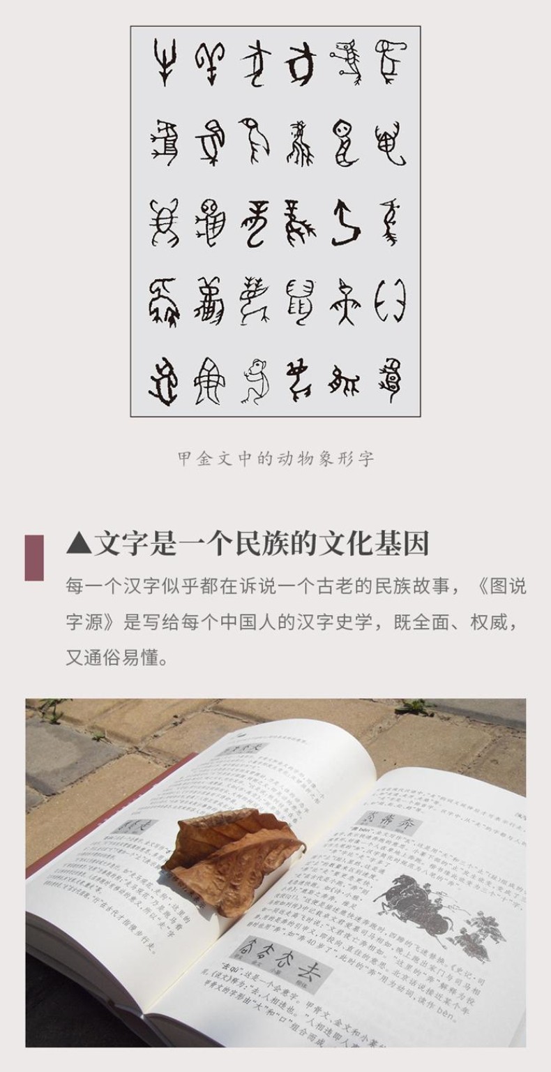 《圖說字源》是一本介紹漢字起源與流變的讀本,匯集了著名語言學家唐漢先生在漢字字源研究方面所取得的成果。 作者秉承嚴謹地治學態度,蒐集各方有關漢字字源的資料,從古漢字學研究等學科入手,發現了漢字形成過程中許多有趣而又有規律性的現象。 本書從漢字與動物、漢字與植物、漢字與天地、漢字與人體、漢字與兩性、漢字與戰爭、漢字與民生、漢字與文化等方面圖文並茂地闡釋了漢字的諸多奧秘。
