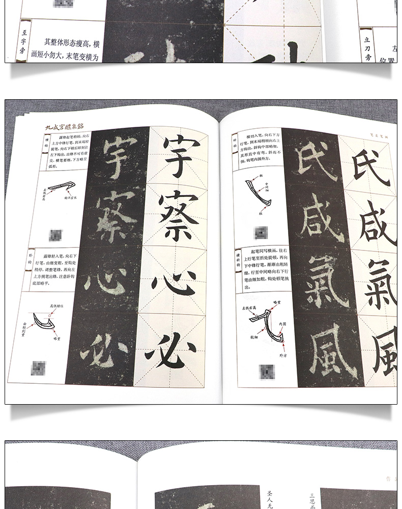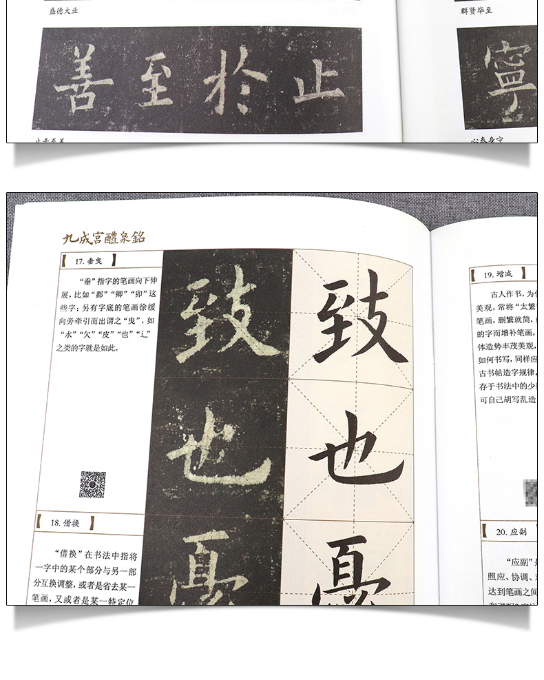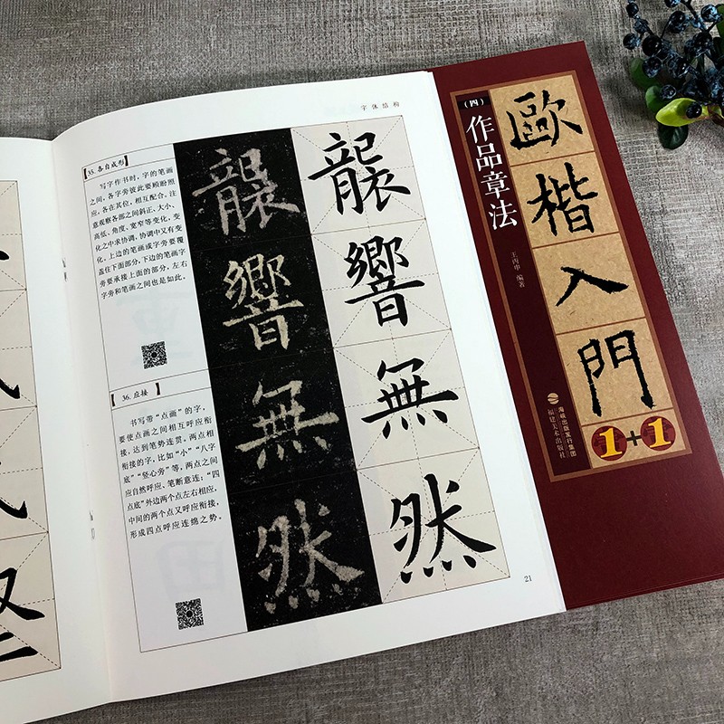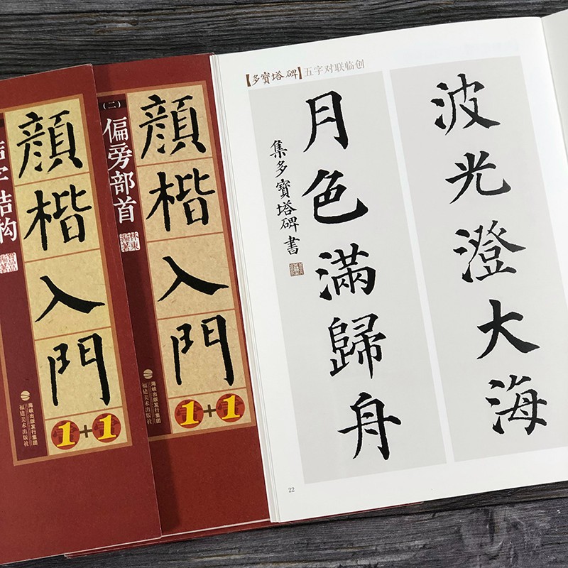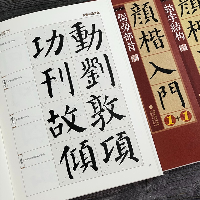 《顏楷入門1+1(二):偏旁部首》中的顏氏楷書是法度森嚴的典範,是眾多書法入門者的首選,在對顏楷的筆法筆劃、偏旁構件、結字規律和變化方式進行學習之後,便可進行集字練習等。 《顏楷入門1+1(二):偏旁部首》將《多寶塔碑》和《顏勤禮碑》的字例進行橫批、對聯、中堂、斗方等多種形式的組合,為習書者提供了學習的樣本,為其日後的楷書創作提供了方向。