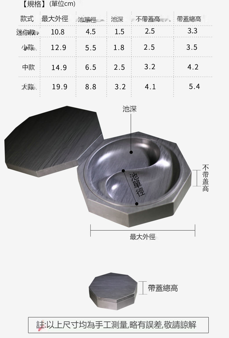 八卦太極原石帶蓋水波紋雙墨池歙硯(附 竹書籤,墨條,護養油,取水管)