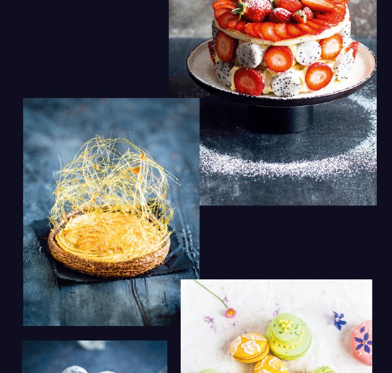 水果、冰淇淋、慕斯、醬汁和奶油等別出心裁的美食元素,巧妙地設計於盤中,成為一款款勾人食慾的“藝術品”。