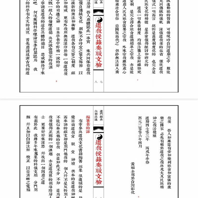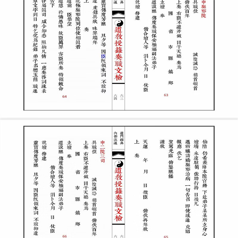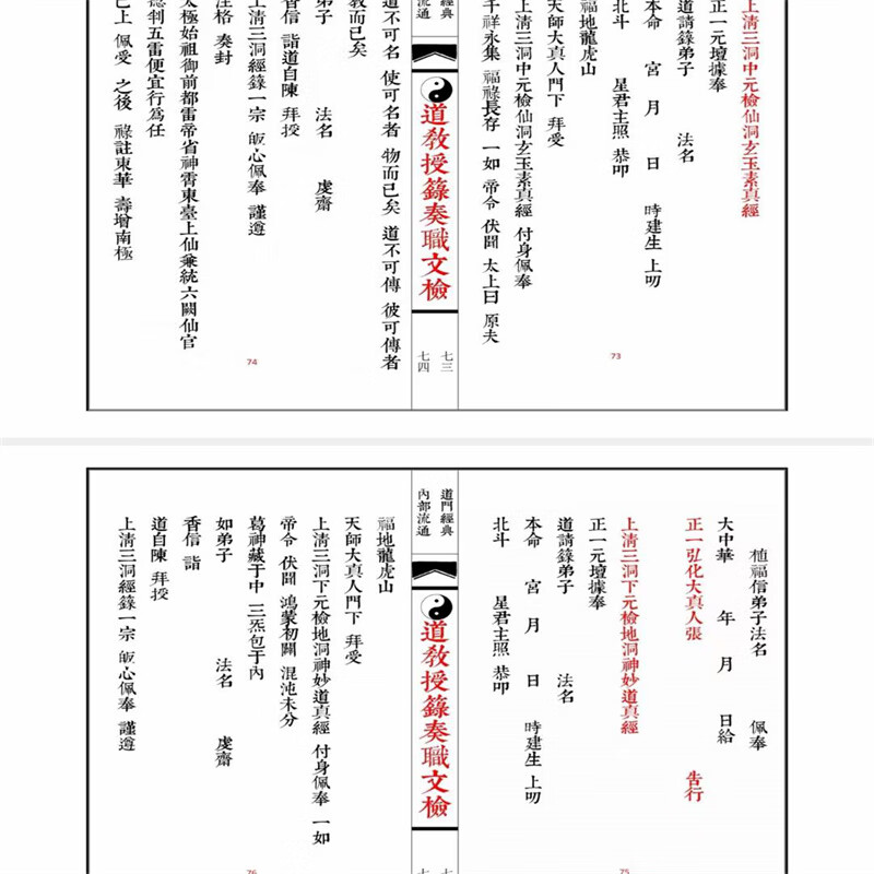 《道教授籙奏職文檢》全四冊 繁體豎排 線裝彩印
