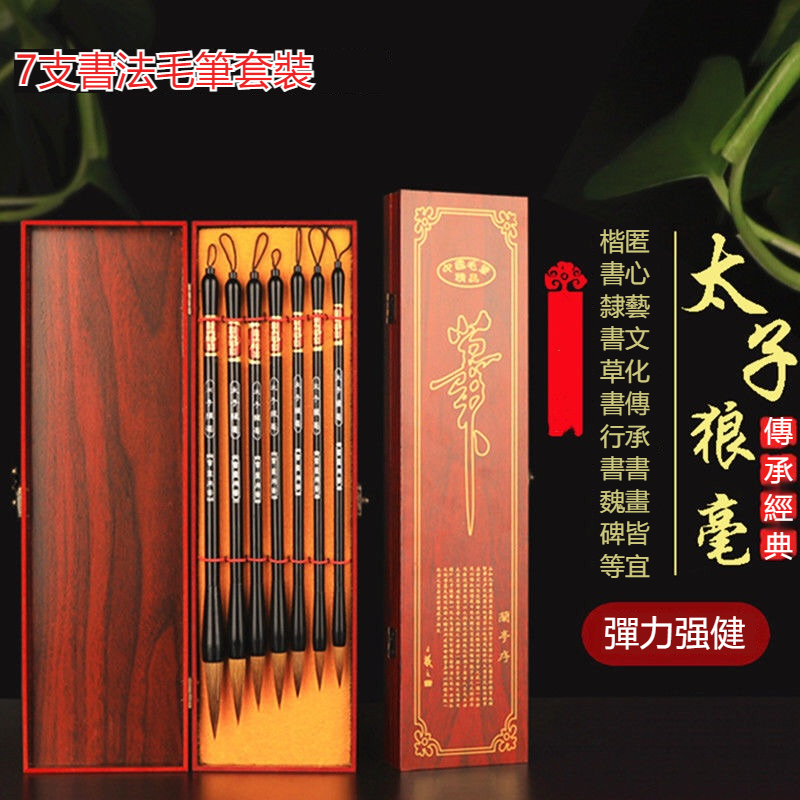 一入組【出廠價】7支毛筆套裝【附書法視頻教程】贈送高檔精美毛筆禮盒+加厚水寫簿-NT$ 799