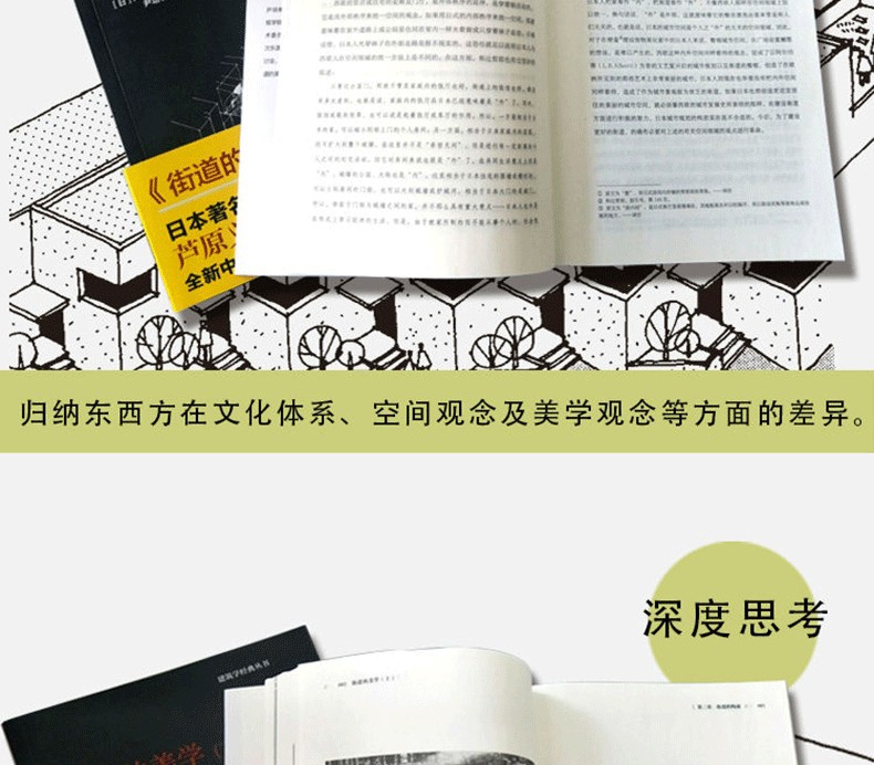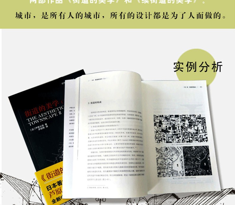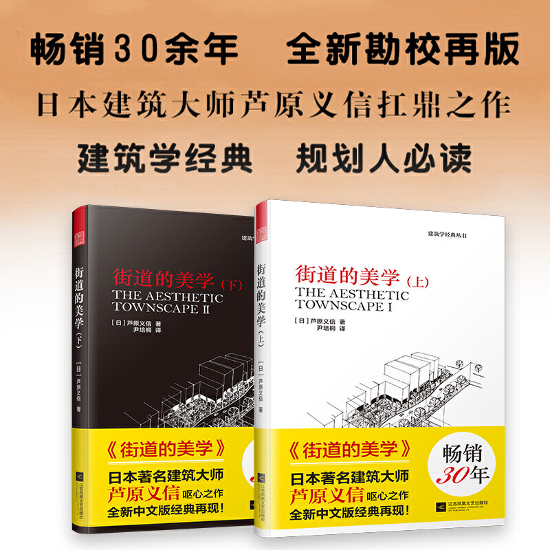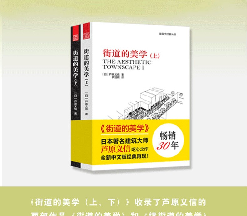 街道的美學(上、下)收錄了日本建築大師蘆原義信的兩部作品《街道的美學》和《續街道的美學》。文字都通俗易懂,作者把自己的理論用於了自己的建築創作中,很有說服力。書中作者分析了外部空間,街道、景觀、住宅等,結合大量的實例。其中傳達著一個中心思想就是:城市,是所有人的城市,所有的設計都是為了人而做的。如同很多日本建築師一樣,蘆原義信強調對人文精神的把握。