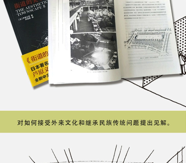 蘆原義信這部《街道的美學》則一掃上述弊端。作者把當代許多建築理論、豐富的知識寓於通俗易懂的流暢文字中,通俗而不淺薄。並且,作者又把這些理論應用於自己的建築創作,通過自己的大量作品說明這些理論,故理論性強但又不脫離實踐。我以為這乃是此書的*特點。
