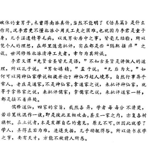 宗教經典含有豐富的哲學思想。在不少佛典中,其精妙的邏輯思想使邏輯學家、哲學家歎為觀止。佛教的哲學思想對中國哲學尤其對宋明理學的發展產生過重大的影響。如果說佛經經典中不少就是哲學專著的話,《聖經》則不能算作是嚴格意義上的哲學著作,但《聖經》中有豐富的哲學思想,尤其是它所體現的信仰與價值觀念,都極大地影響了西方哲學,它在世界的本源、發展、歸宿等問題上,在美與醜、惡與善、自由與責任等問題上提出了一系列予人啟迪、引人思考的思想火花。同樣,《古蘭經》的哲理是阿拉伯哲學的重要組成部分。至於道教,由於它以“道”為其最高信仰,把老子的《道德經》宗教化,奉《道德經》為主要經典,因此,它以“道”為核心所展開的哲學思想更為精緻,它在宇宙生產、宇宙構成,以及生死觀、善惡觀等方面都有完整的哲學思想,它的哲學思想是中國哲學的重要組成部分。