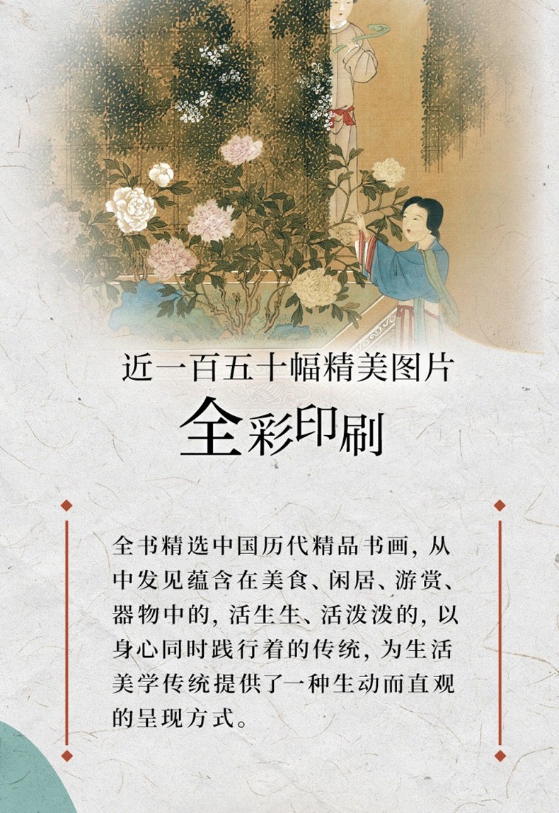 作者作為「生活美學」的發起人,此書匯集了他多年梳理、發現和總結的經驗與體悟。近一百五十幅精美圖片的呈現使全書如一幅移步換景的長卷,韻味悠長的繪畫、莊重的禮器、精美的佩飾融於多姿多彩的生活日常之中,這才是中國人的「審美即生活」。