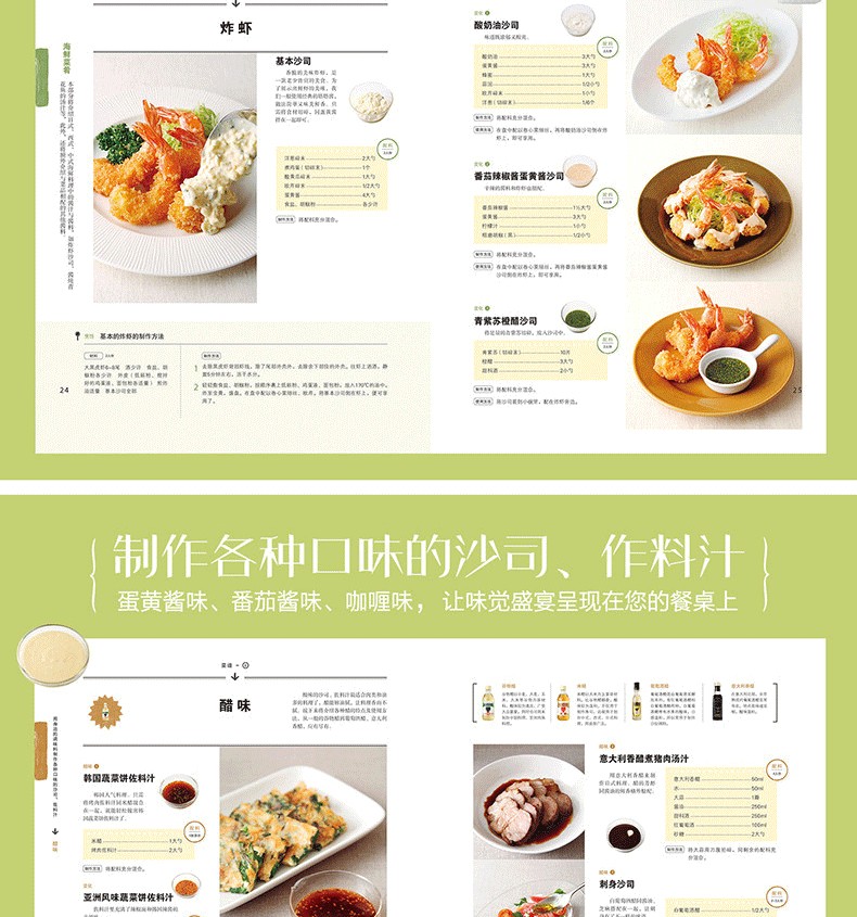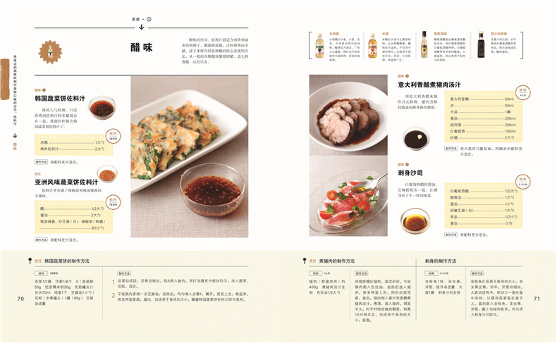 201種醬料調配,根據各國料理特點,按照材料和調製方法清晰分類,方便查找。與書中醬汁完美搭配的201種菜品,製作步驟清楚,是餐廳製作人氣醬汁料理的不錯參考。
