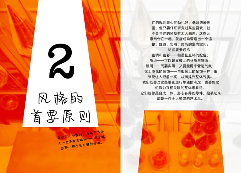 ● 就風格的要原則提供清晰易懂的建議,包括色調和顏色、質地、亮度和飾面。