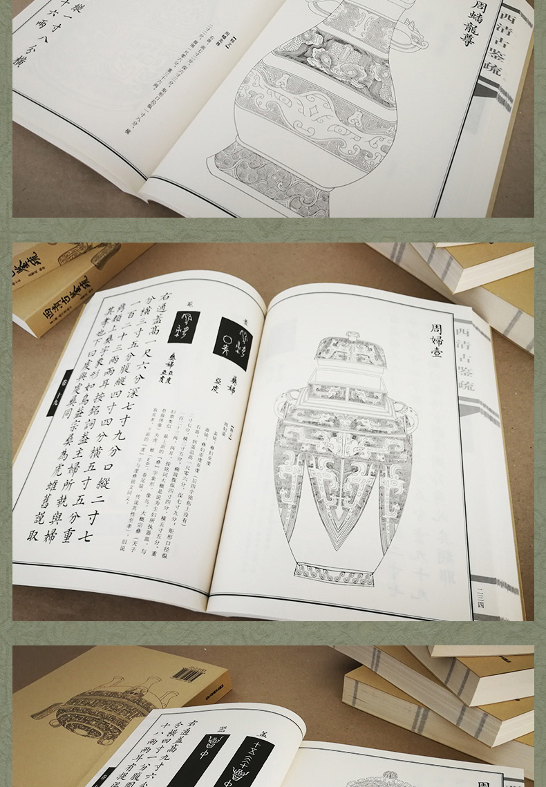 沿用此書體例,清朝又編纂了《西清續鑑》和《寧壽鑑古》兩部書。 《西清古董》成為文物圖譜編纂的範本。