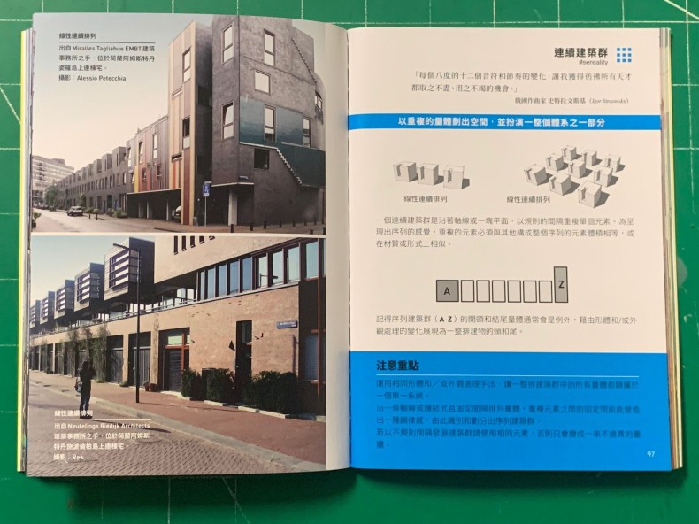全書藉由圖示與實體縮小模型逐步解說當代空間構成的方法如折疊平面或結合曲線的設計。每一章開頭都以世界公認現存的知名建築為例做解說,讓讀者更清楚了解應用方式與成果。