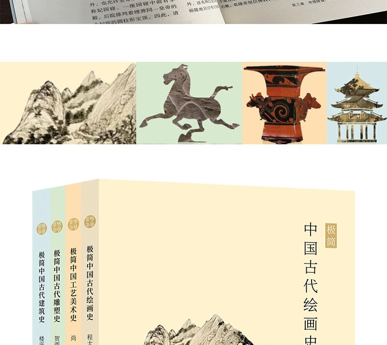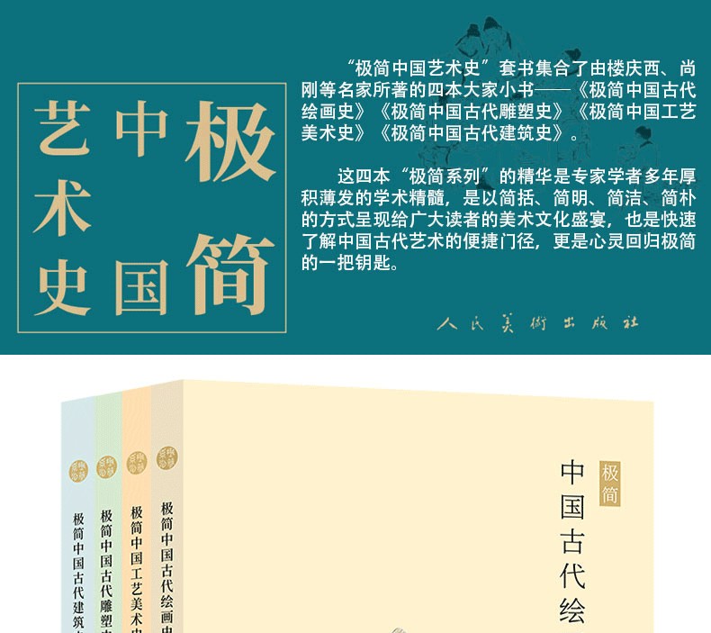 “極簡中國藝術史”套書集合了由樓慶西、尚剛等名家所著的四本大家小書——《極簡中國古代繪畫史》《極簡中國古代雕塑史》《極簡中國工藝美術史》《極簡中國古代建築史》。這四本“極簡系列”的精華是專家學者多年厚積薄發的學術精髓,是以簡括、簡明、簡潔、簡樸的方式呈現給廣大讀者的美術文化盛宴,也是快速了解中國古代藝術的便捷門徑,更是心靈回歸極簡的一把鑰匙。