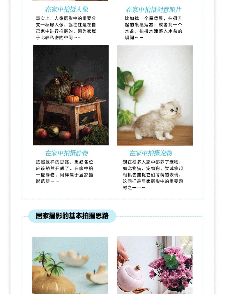 居家攝影:小天地拍出大作品 攝影自學教程 人像美食拍照技巧 視頻拍攝剪輯創意攝影筆記2冊