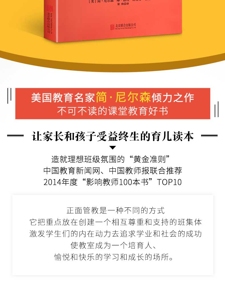 珍·尼爾森、琳·洛特、史蒂芬·格倫編著的《教室裡的正面管教》是一種經過數十年實踐檢驗,使全世界數以百萬計的教師和學生受益的黃金準則。