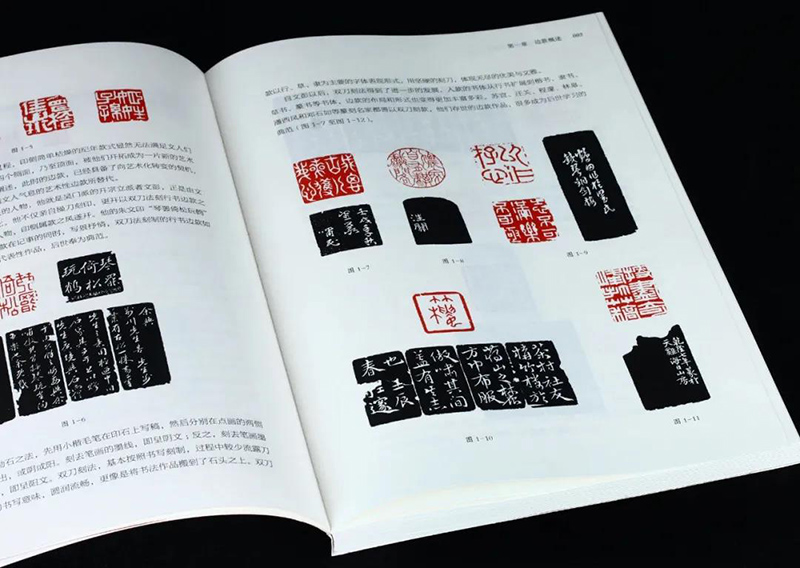 《單刀楷書邊款刻法與創作》全書236頁,共九章,前五章主要講解邊款刻法,從邊款起源到用刀方法,從基本筆劃到結構特點,循序漸進,沒有冗長的理論,只有真刀真槍的技法講解,800餘個範字全部由江豪旭(庵角山人)老師親自刻製,再經過高清掃描及專業處理,最終以米字格的圖片形式呈現,每一個範字的字口都十分清晰。