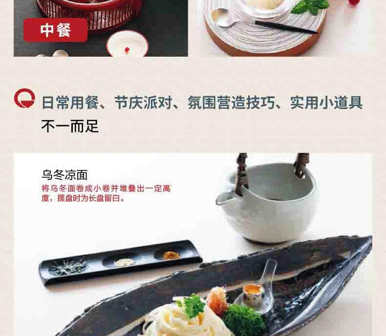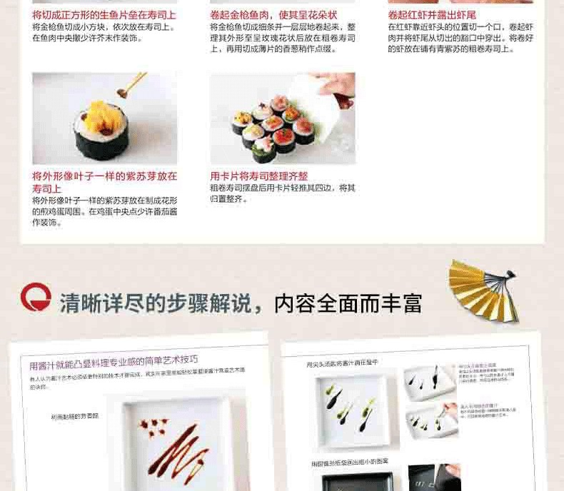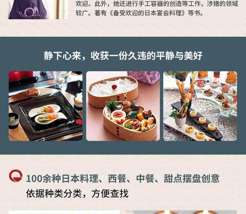 100餘種日本料理、西餐、中餐、甜點擺盤創意,依據種類分類,方便查找