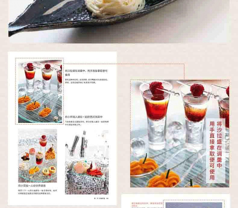 《讓餐桌更有魅力的擺盤技巧》共收錄100餘種擺盤方式,包括日本料理、西餐、中餐、甜品等。每一款都可謂精雕細琢。配合容器選擇方法、材料圖示、步驟解析、操作重點提示,一次便能掌握擺盤精髓。精美實用,指導性強,是專業人士和美食愛好者的操作指南。對於講究生活品質的人來說,通過這本書的學習變更打造精巧雅緻的餐桌的風景。