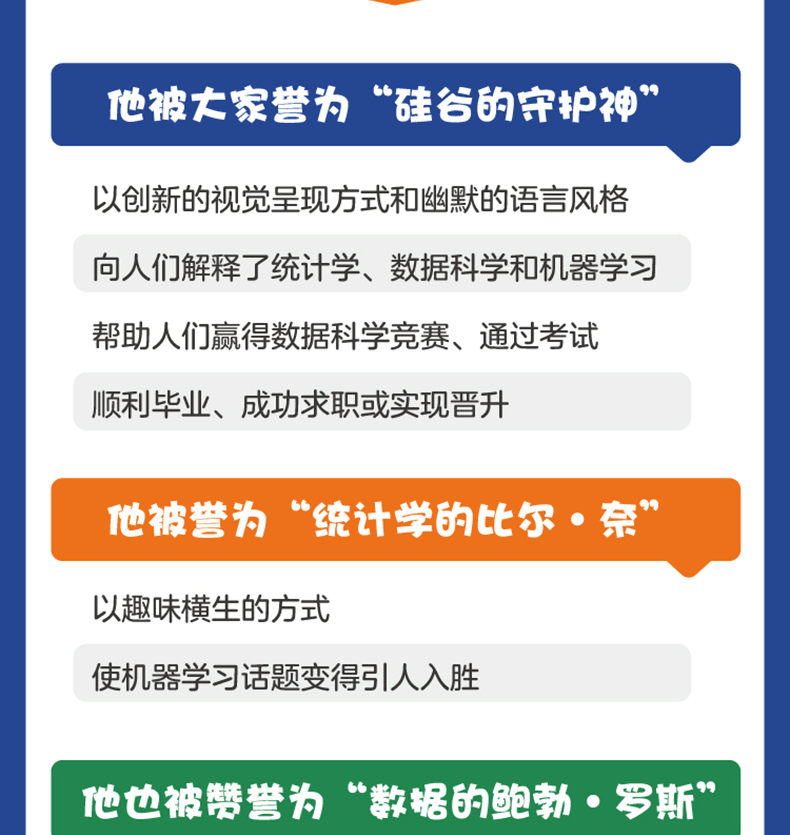 他獨特的圖文表達形式和幽默的語言風格深受觀眾喜愛。這本《StatQuest圖解機器學習》結合了他創新的視覺呈現方式,深入淺出地闡釋了機器學習的基礎知識和高階知識,是一本輕鬆理解機器學習的「漫畫書」。是我們都愛的StatQuest統計學和機器學習書。