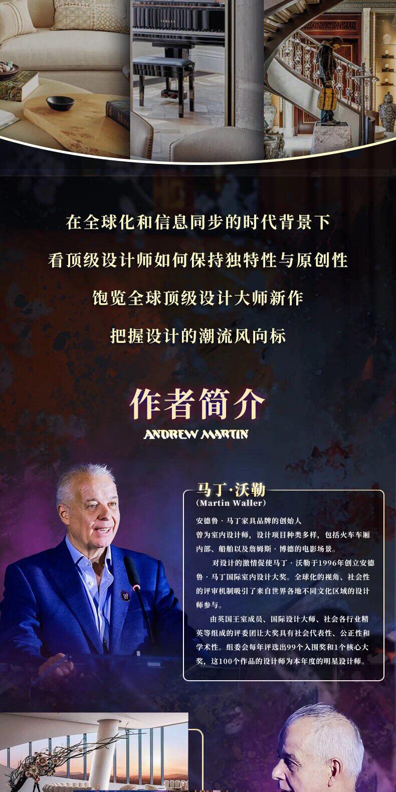 《第29屆安德魯馬丁國際室內設計大獎獲獎作品》旨在為室內設計師、建築師、地產從業者及設計院校師生提供寶貴的靈感參考與專業啟迪;同時,也為所 有追求高品質生活、熱愛藝術與美學的讀者,提供一次足不出戶、遍覽世界*級居住空間的沉浸之旅,激發關於熱愛藝術與美學的讀者,提供一次足不出戶、遍覽世界*級居住空間的沉浸之旅,激發關於理想生活的無限之旅。