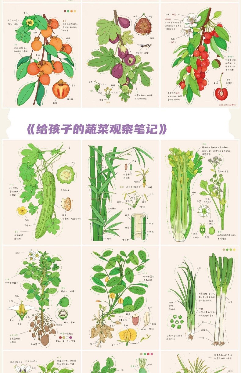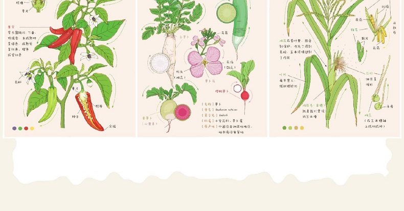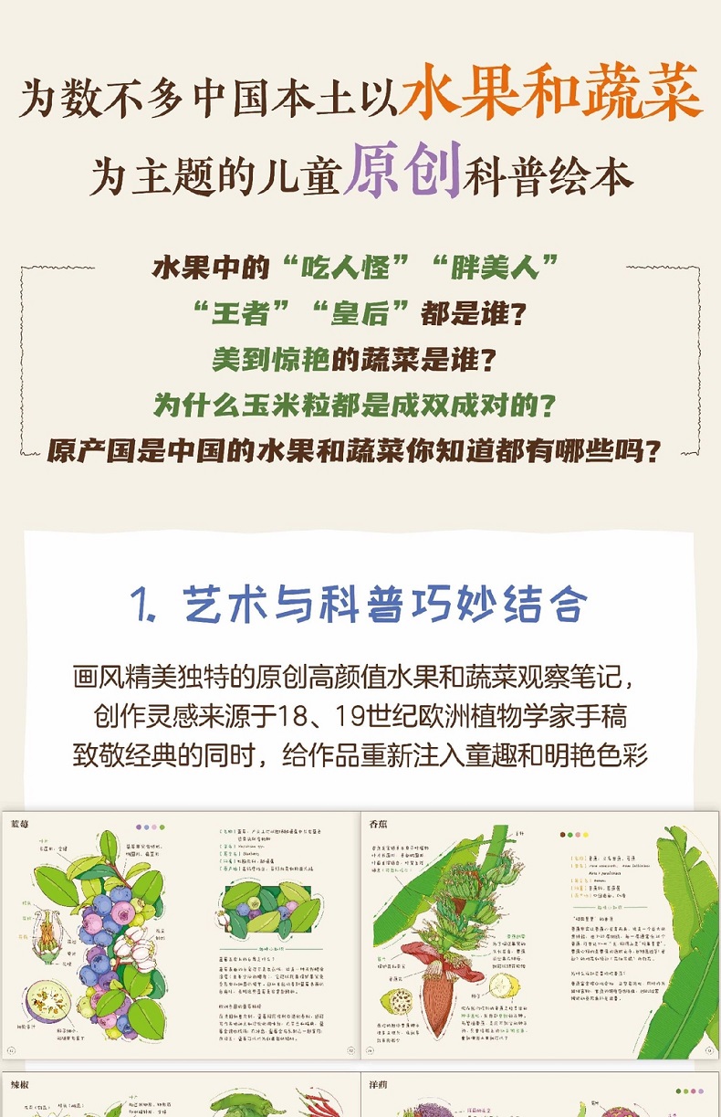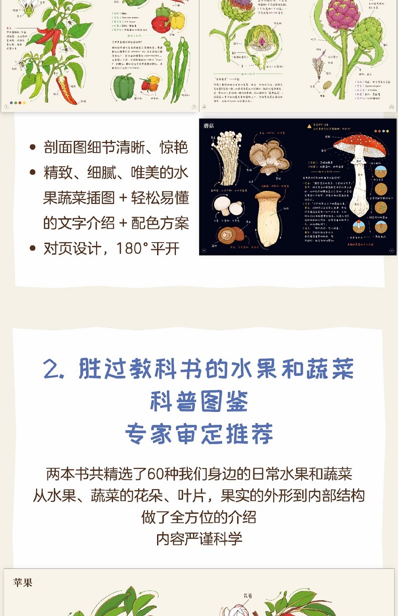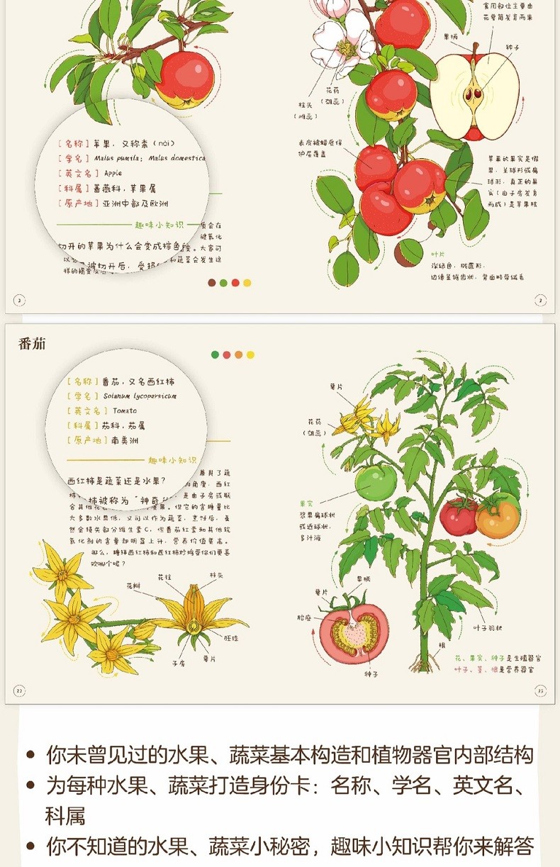 精選60多種日常蔬果,從花朵、葉片、果實的外形到內部結構全方位介紹,內容科學嚴謹。