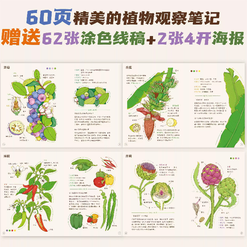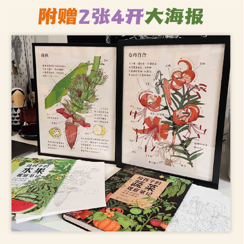 【贈62張著色線稿+2張4開海報 】孩子的蔬果觀察筆記(全2冊) 水果蔬菜科普大全書 中小學生日記周記素材 閱讀課外書