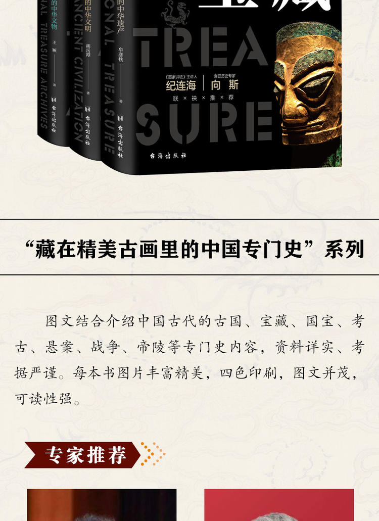2.和同系列的上一輯涵蓋央視紀錄片《如果國寶會說話》中的國寶、寶藏,這一系列同樣精彩,分別從歷代帝王、懸案和考古的角度展開,圖文並茂地呈現古時的偉大與玄妙,全方位展現歷史中細節的魅力。