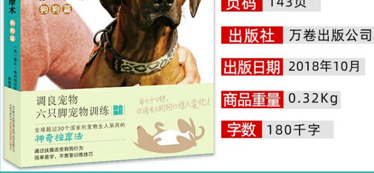 「你的想法改變,你的狗就會改變。」琳達‧泰林頓瓊斯著黃薇菁譯的《TTOUCH神奇的毛小孩按摩術(狗狗篇)》中國際知名動物專家琳達‧泰林頓 瓊斯博士創立的動物按摩法TTouch,以此為理念,讓你在讚賞狗狗的心態下,以愉悅的方式為狗狗做不同手法的撫觸,透過一系列畫圈撫觸和力道的變化, 舒緩狗狗緊繃的身體,提高它對自身身體的意識,讓狗狗更習慣被觸摸和診療,增進狗狗和你的情感聯繫和信任度,因此更容易學習新行為以及養成良好習慣, 也有助於狗狗自信面對陌生及有挑戰性的狀況。