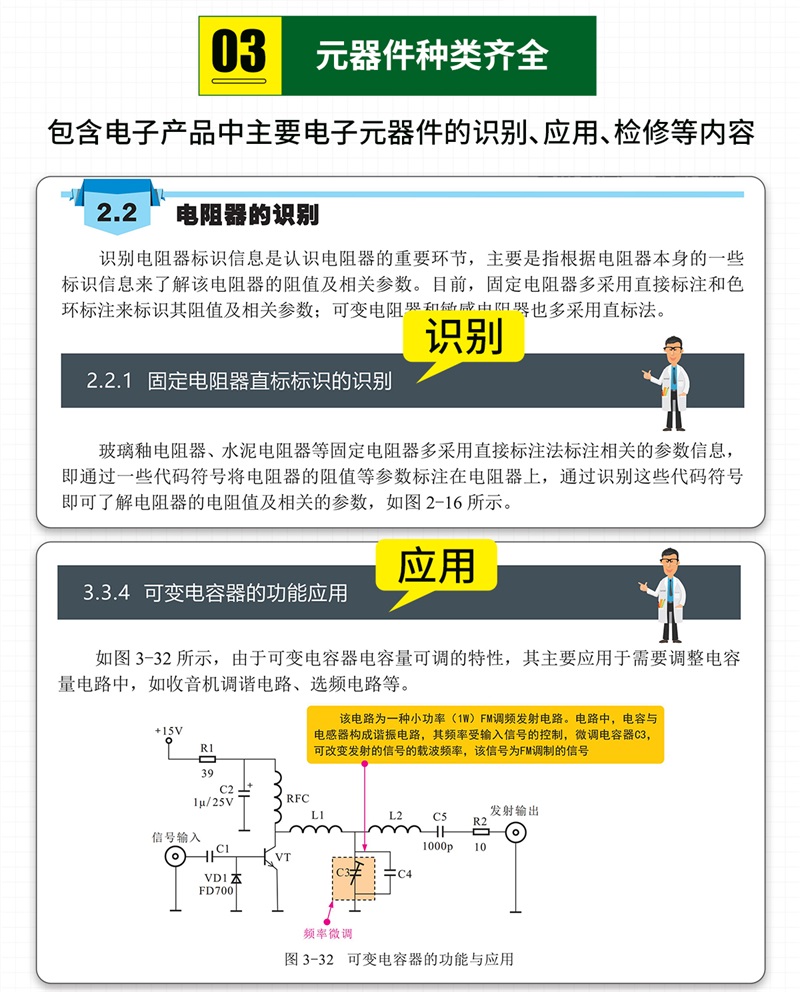 1.全書內容彩色圖解,層次分明、重點突出,複雜難懂的專業知識更容易理解2.全書知識體系完整,包含了電子技術基礎、電路識圖、元器件基礎知識及檢修案例等知識,幫助 讀者打下堅實的專業基礎3.基礎知識與檢修實戰同步講解,非常適合零基礎讀者邊學邊實踐。 4.元件種類齊全,本書包含了電子產品中常用電子元件的識別、應用、檢修等內容 5.視頻輔助講解,在重要的知識點配備視頻講解,手機掃描二維碼即可觀看學習