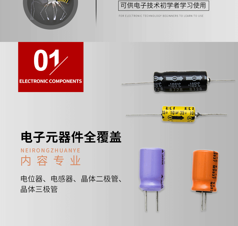 《零基礎電子元器件從入門到精通》全面系統地介紹了各種常用電子元件的識別、特點及檢測方法,從電子基礎知識入手,主要介紹了電阻器、電容器、電感器、二極管、三極管、場效 晶體管、閘流管、積體電路和常用電氣元件的辨識與偵測技能。