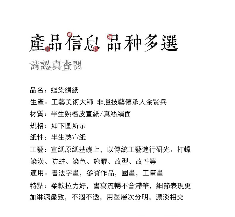 小店訂購都為半生熟宣紙,如需訂購生宣,熟宣 請聯繫客服!