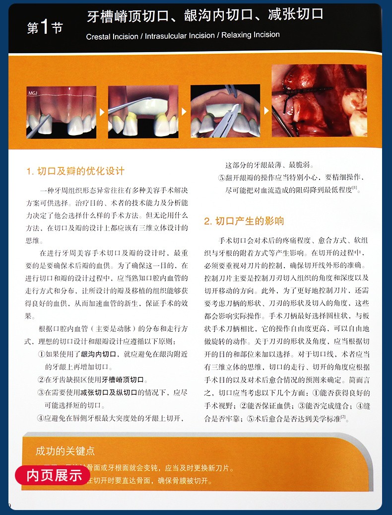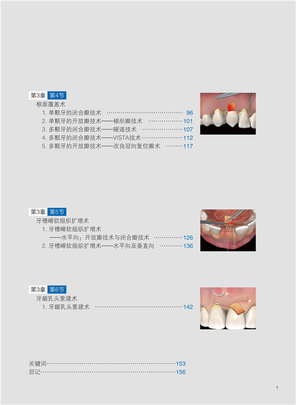 本書是一個手術方法集,內容涵蓋游離齦移植科技、冠延長科技、軟組織增量手術、牙周根面覆蓋術、牙槽脊上軟組織增寬術、牙齦乳頭重塑術等牙周基本手術術式。