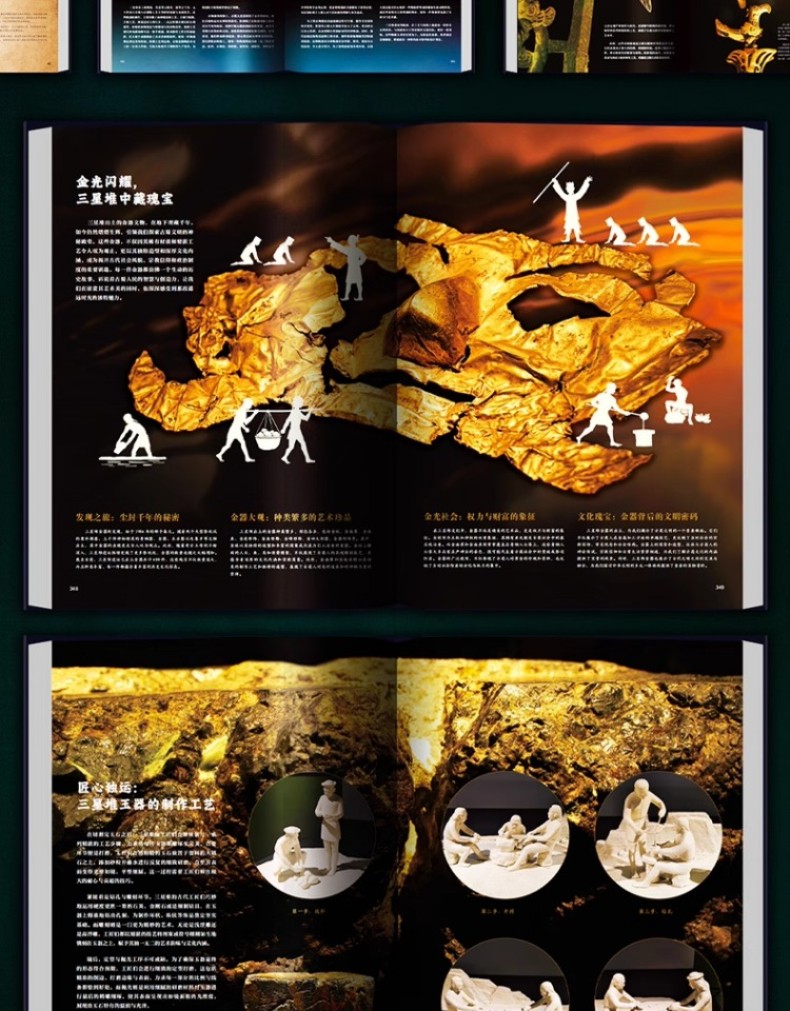 3.1375幅全類型彩圖,多角度定格三星堆奇妙風采:書中無論是對三星堆博物館的實拍還是藏品細節的放大,都採用高精度全彩圖,近1400幅高清彩圖,全方位呈現了信息實拍圖、細節放大圖、製作工藝圖、紋飾平面圖、三星級圖等方面超能多極尺寸的精彩圖譜而且書中特意採用了角度多樣的版式設計,融合專業的文物解讀和腦洞大開的拓展信息,各種拉線說明、知識補充,藏品全貌展示、局部細節放大、鑑賞技巧、紋樣圖展示、歷史背景,深度挖掘三星堆背後的歷史文化內涵。