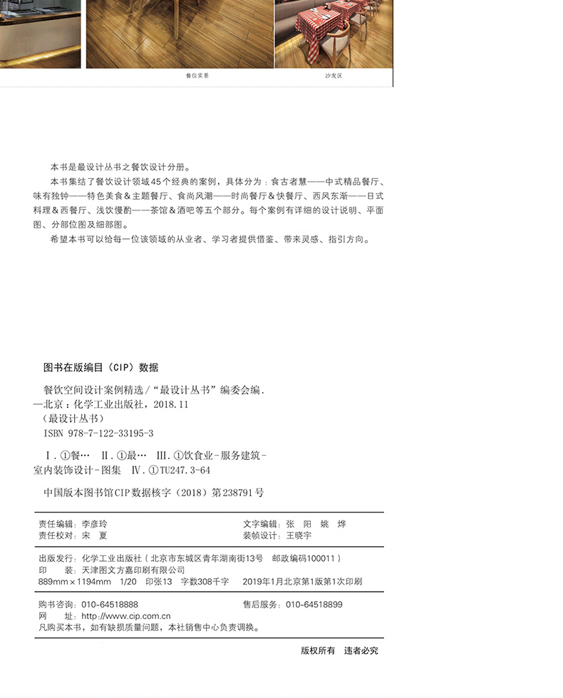 本書集結了餐飲設計領域43個經典的案例,具體分為:食古者慧——中式精品餐廳、味有獨鍾——特色美食&主題餐廳、時尚風潮——時尚餐廳&快餐廳、西風東漸——日式料理&西餐廳、淺飲慢酌——咖啡館&酒吧等五個部分。每個案例有詳細的設計說明、平面圖、分部位圖及細部圖。